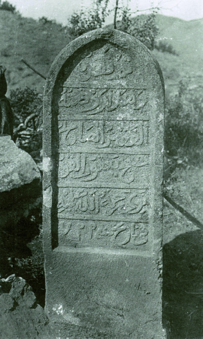 Надгробие Идриса, сына Хаджи Яхья Отузского, 763 г. х. Фотоснимок 1926 г. (Мирас–Наследие..., 2016, с. 489, рис. 487)